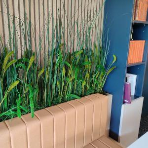 Objectif : humaniser l’espace, rendre plus convivial l’accueil et l’open-space en invitant la nature dans leurs nouveaux locaux