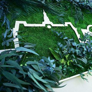 Mur végétal et arbustes créés avec des végétaux stabilisés (sans entretien), logo avec LED